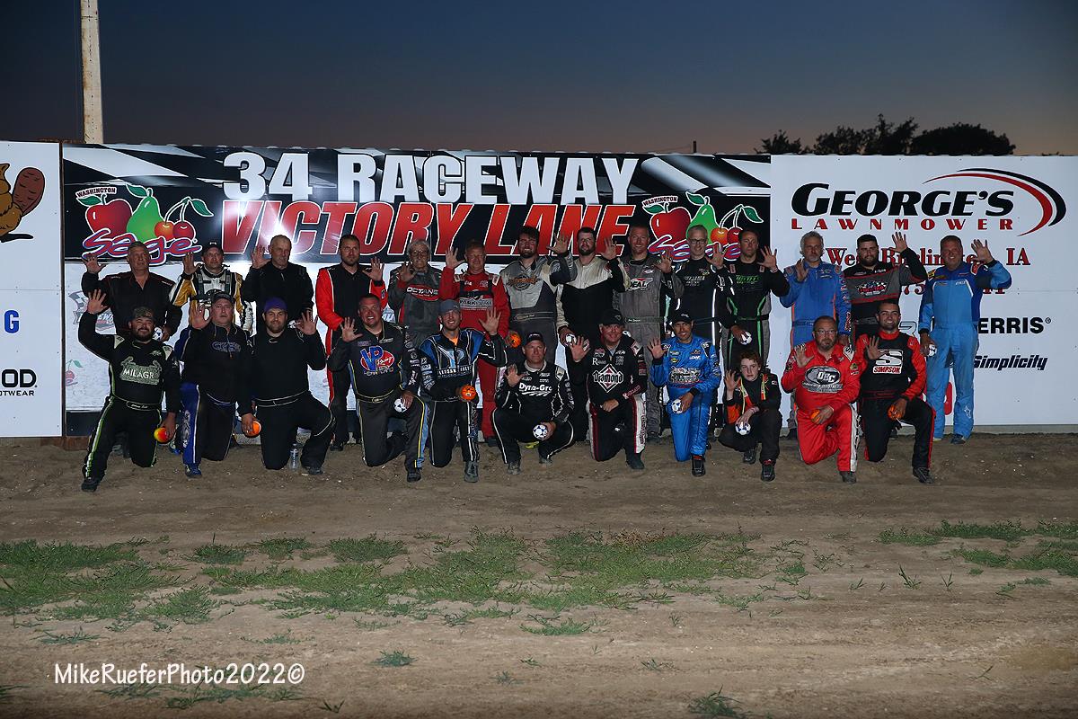 West Burlington, IA (July 2nd, 2022) – Dennis Erb Jr. scored a dominating victory on Saturday night in becoming the latest driver to etch their name in the record books as a winner of the 14th Annual “Slocum 50” at the 34 Raceway. The Carpentersville, Illinois driver compiled a perfect night enroute to the $10,555 pay day, scoring the Dirt On Dirt Fast Time award, the Slick Mist Pole Award, while leading every lap of the main event.