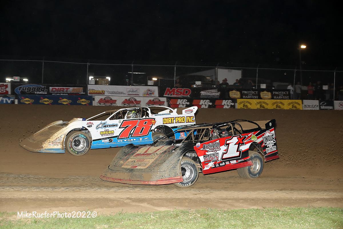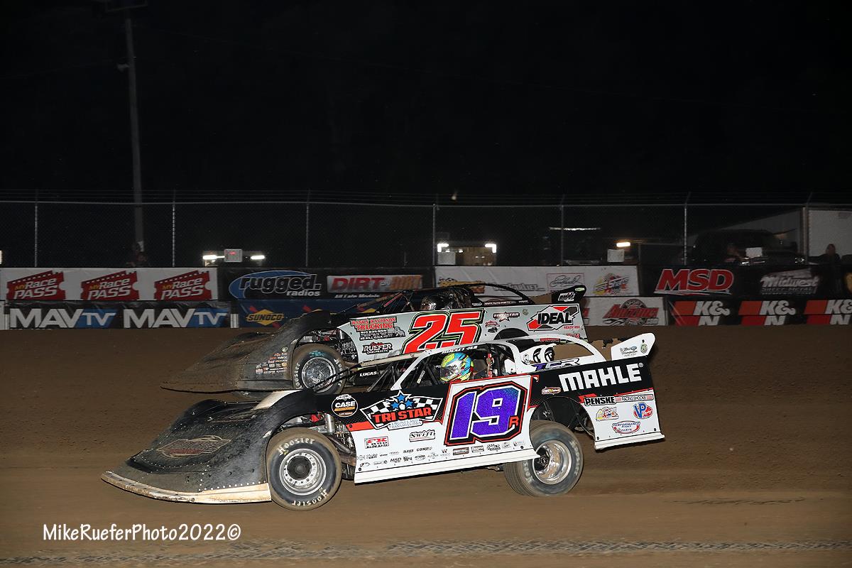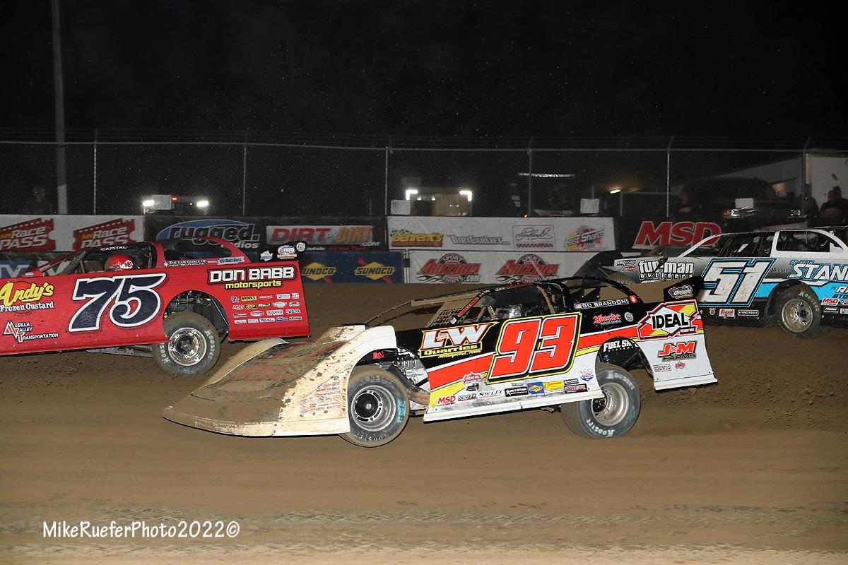 The night’s final caution would slow the pace with just three laps remaining, giving Simpson one more shot at the race leader. Erb would cruise in the final three laps to score his first career Lucas Oil MLRA victory by a margin of 1.531 seconds over Chad Simpson. Gustin topped off the podium finishers in third while Chris Simpson and MLRA point leader Johnny Scott completed the top five.