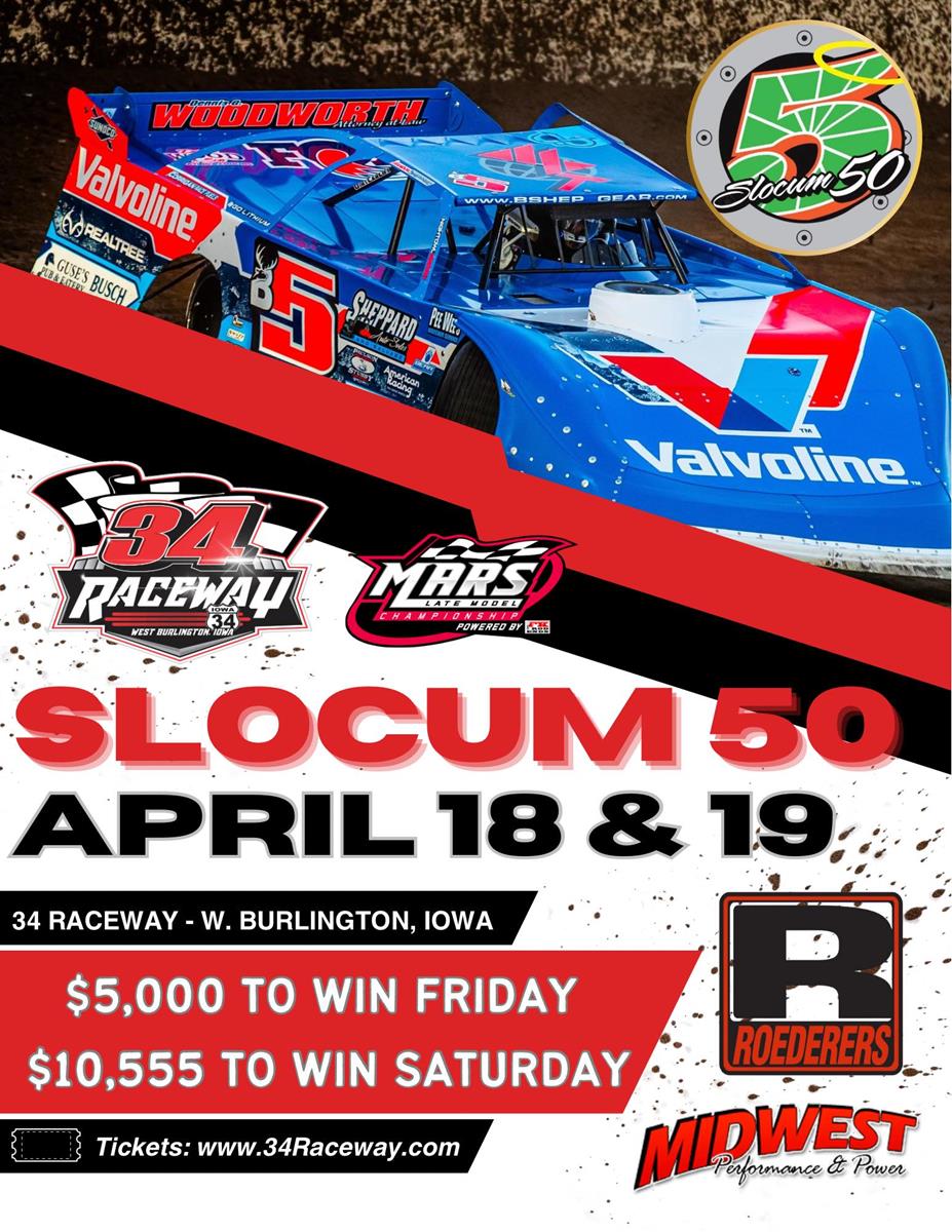 MARS Racing Series invades the high banks of 34 Raceway with the $10,555 to win Slocum 50 presented by Roederer's Pit Stop one month from today! Join us for the $5,000 to win Friday Prelude to the Slocum 50 presented by Midwest Performance & Power too. Are you ready?!